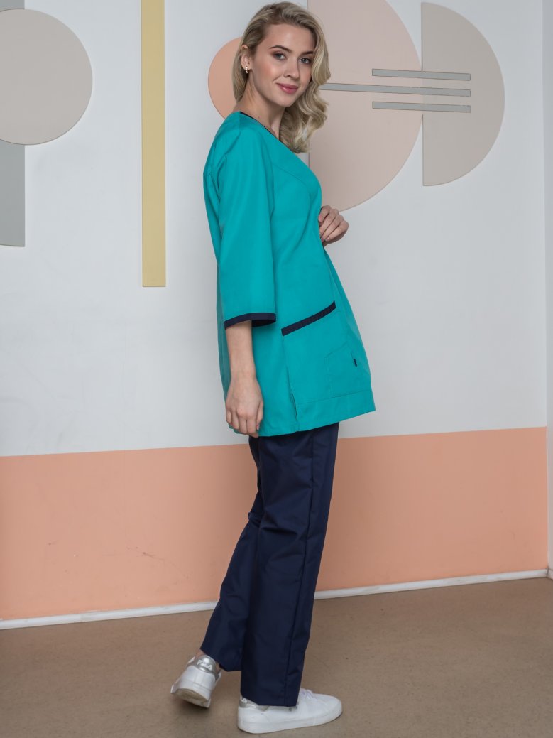 Женский костюм Вояж (ткань ТиСи), светло бирюзовый/темно синий