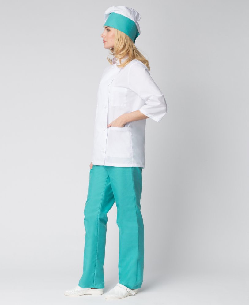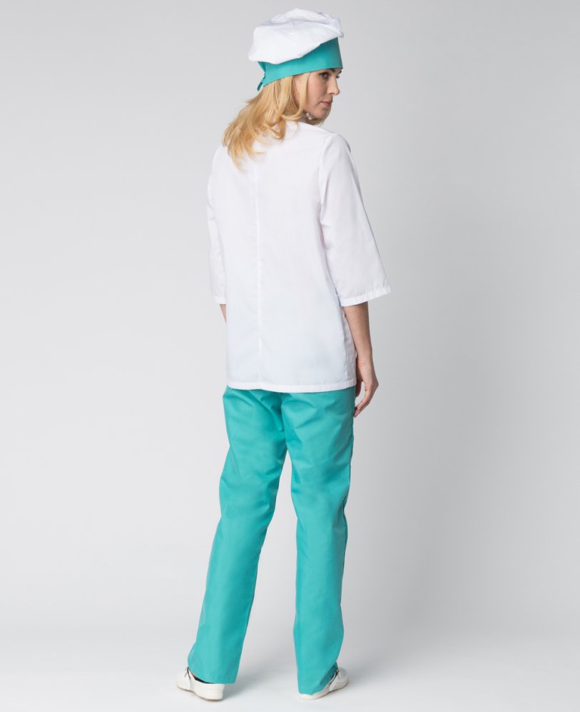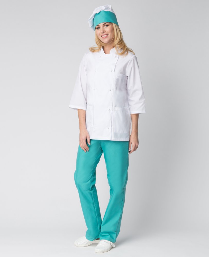 Костюм женский повара Шеф (тк.ТиСи), белый/бирюзовый