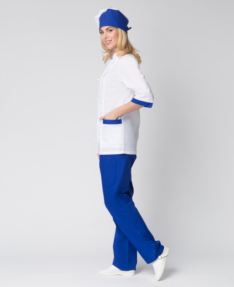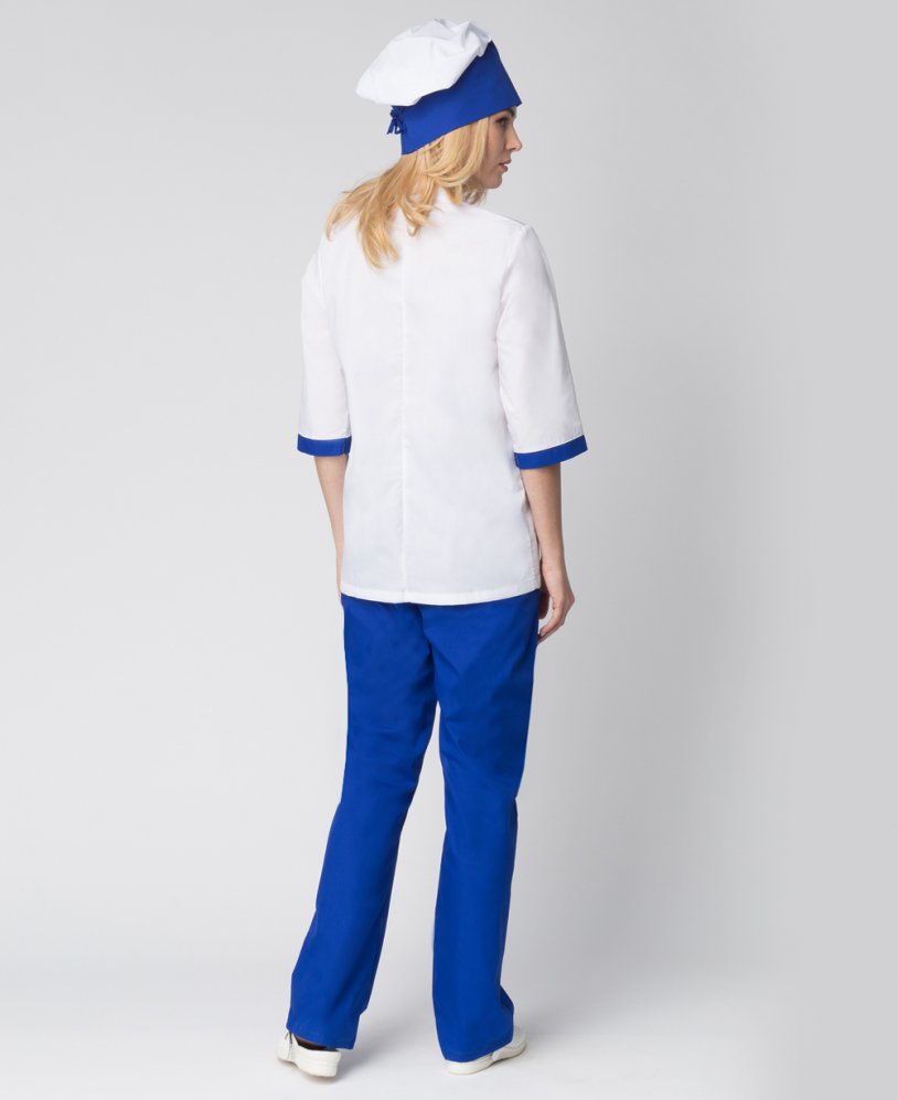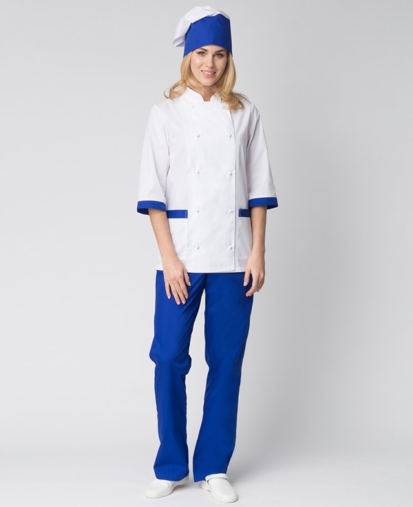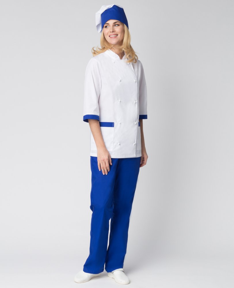 Костюм женский повара Гастроном (тк.ТиСи), белый/васильковый