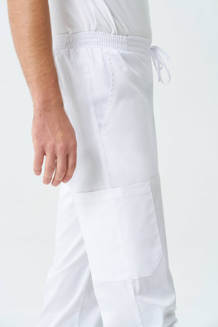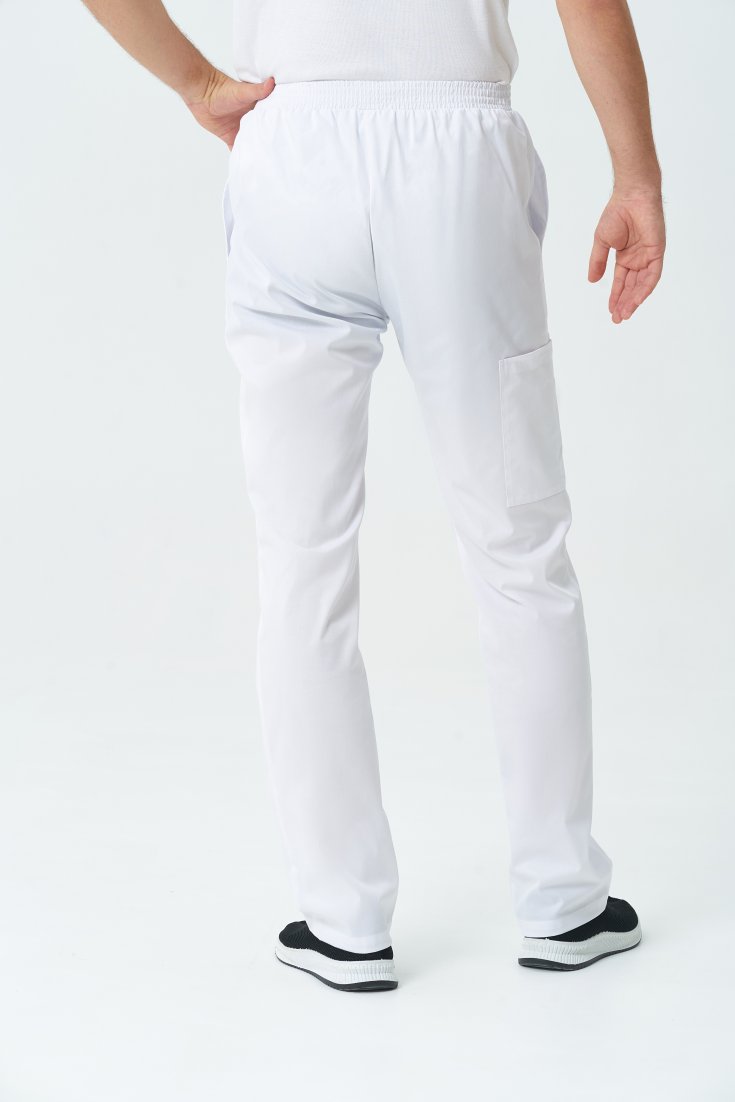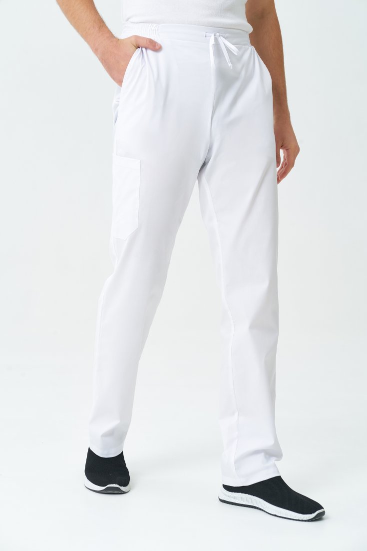 Брюки мужские из смесовых материалов, с притачным поясом и надставком, в поясе продернут рулик. Брюки прямого силуэта. Передняя часть брюк с боковыми карманами, на правой передней поло- винке брюк настрочен боковой нижний карман.