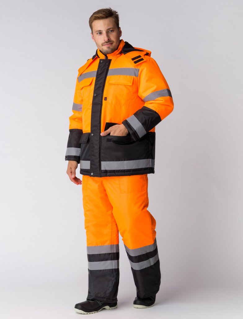 Костюм зимний Дорожник (Оксфорд) брюки, оранжевый/черный