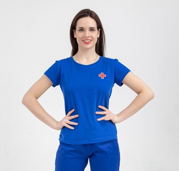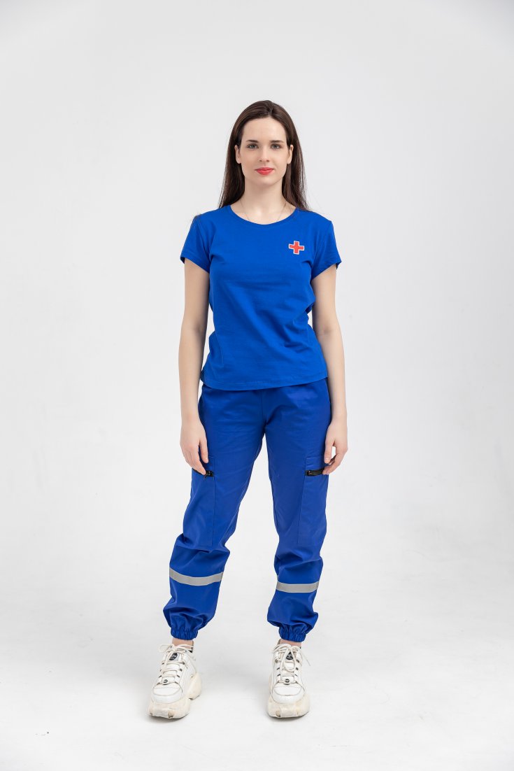 На груди выполнена вышивка красный крест, на спине вышивка Скорая помощь.