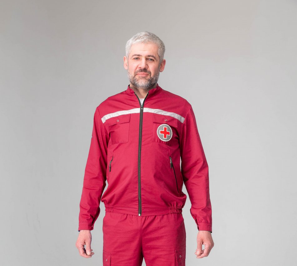 Светоотражающий шеврон красный крест расположен на левом верхнем кармане.