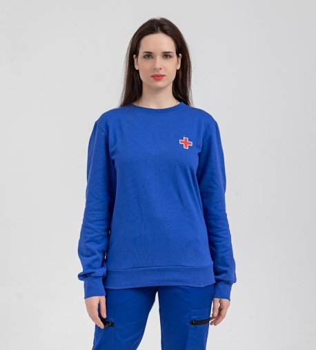 Свитшот 2-х ниточный футер прямого силуэта, круглый трикотажный ворот, длинный рукав с манжетой.