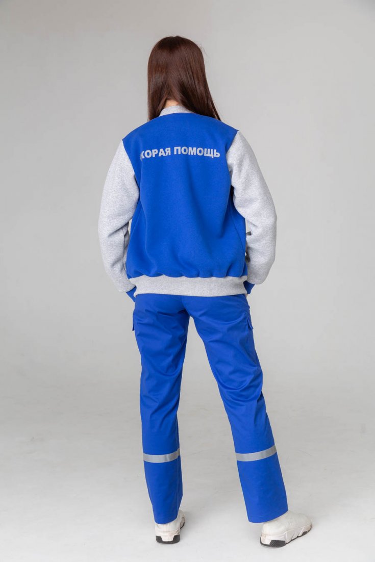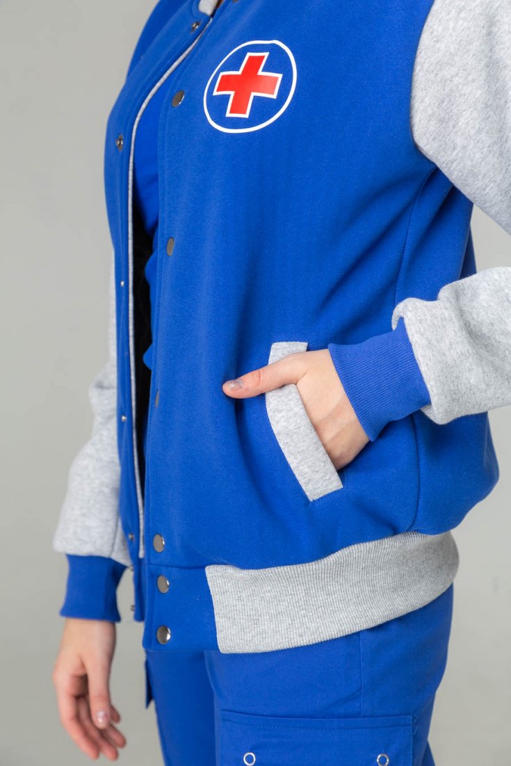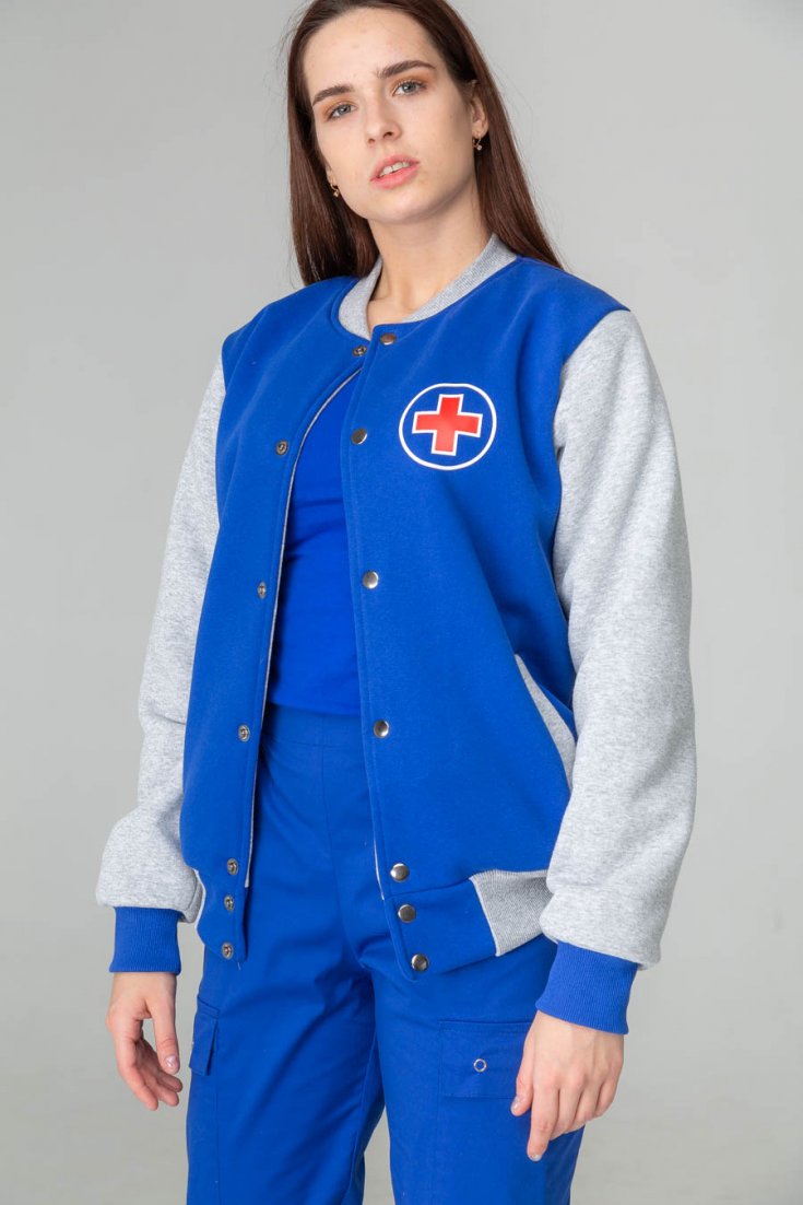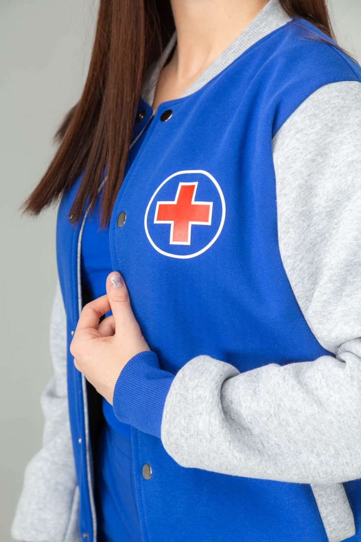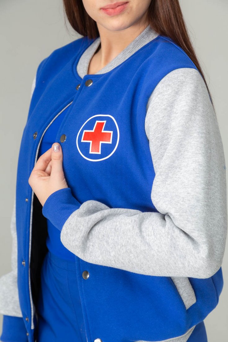 Длинный рукав на манжете. Круглый, прилегающий трикотажный ворот. Застежка на кнопках. На спине выполнена надпись термопечатью Скорая помощь.