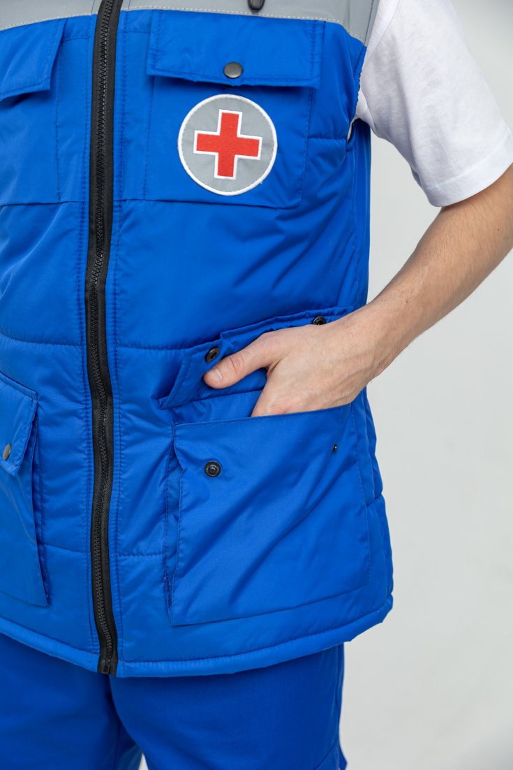 Жилет медицинский утеплённый женский/мужской разработан специально для сотрудников Скорой помощи с учётом пожеланий и специфики работы.